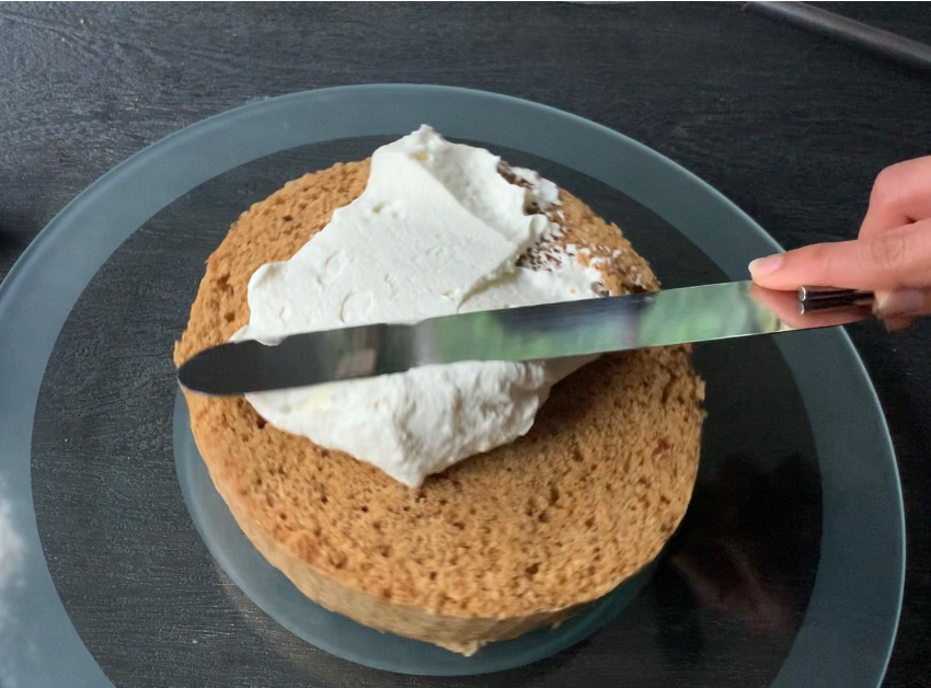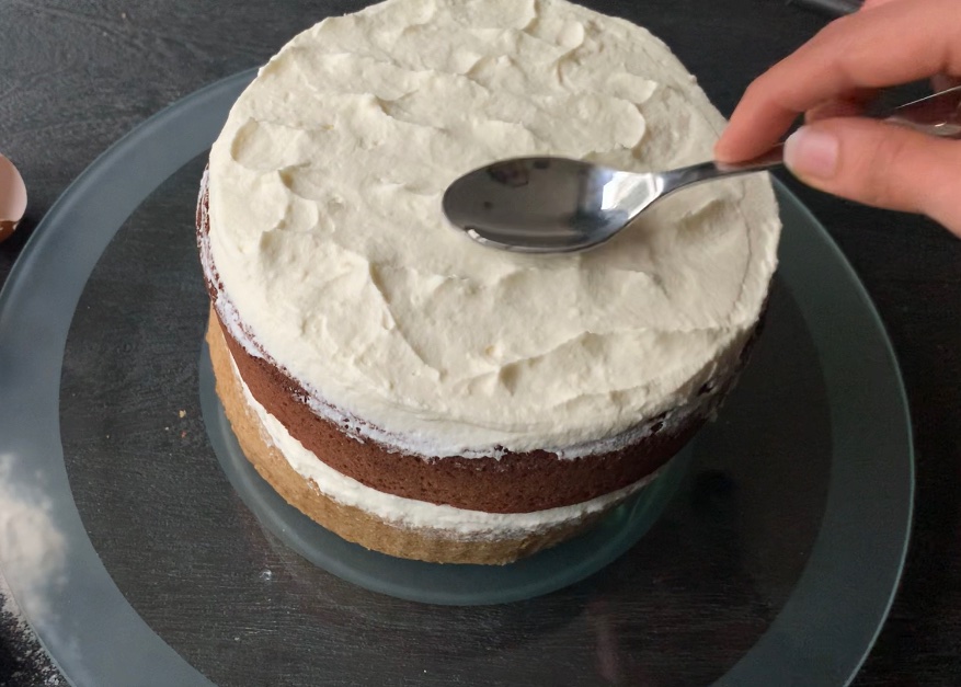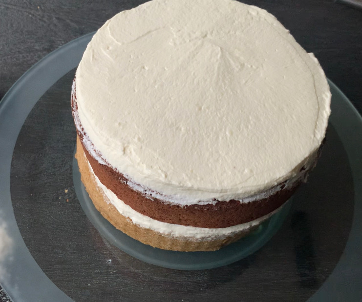 - If making a layered cake, just add sponges on top and continue covering with cream.