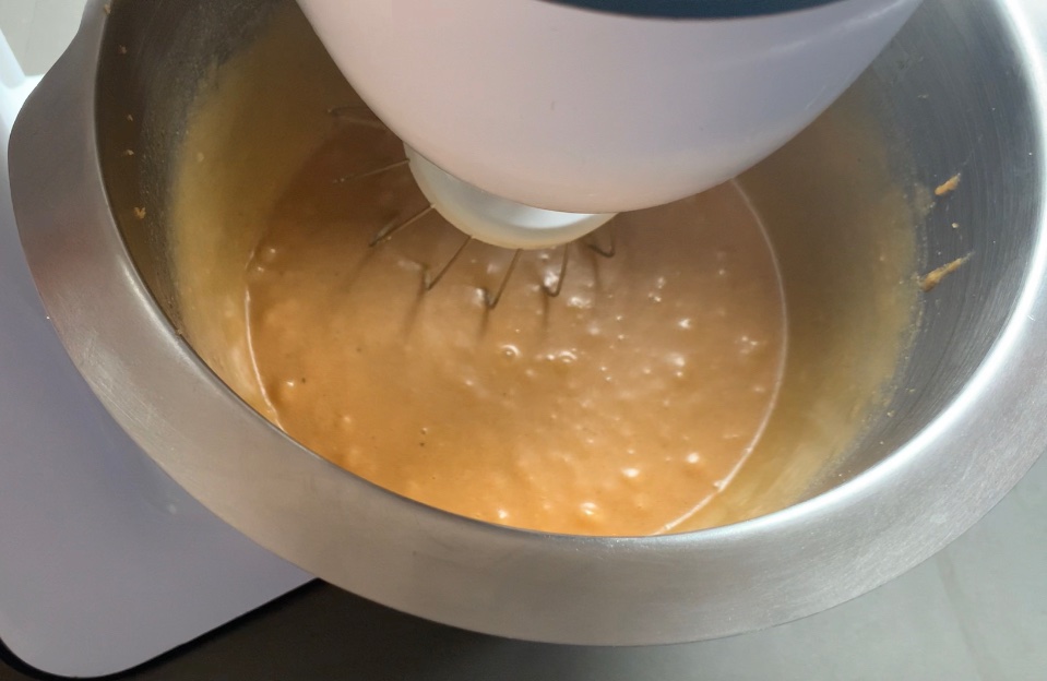 - Beat the sugar, ghee, vanilla and eggs until it’s a smooth and fluffy mixture. If using butter, make sure to bring it to room temperature before starting to beat.