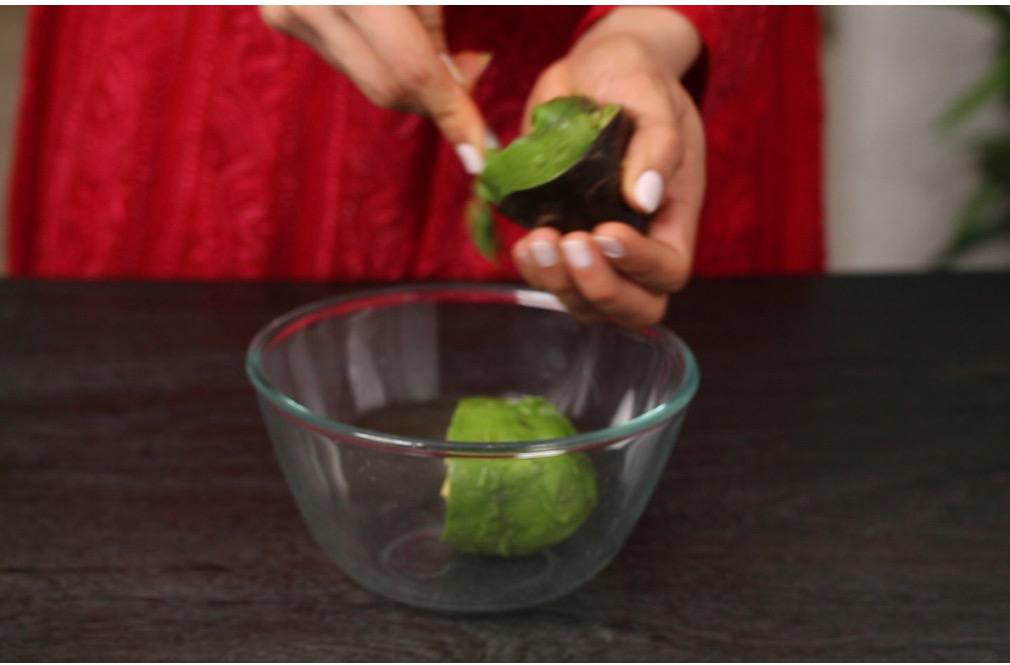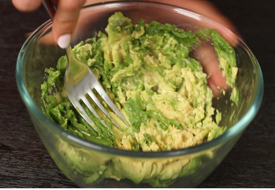 - Mash the avocado with a fork.