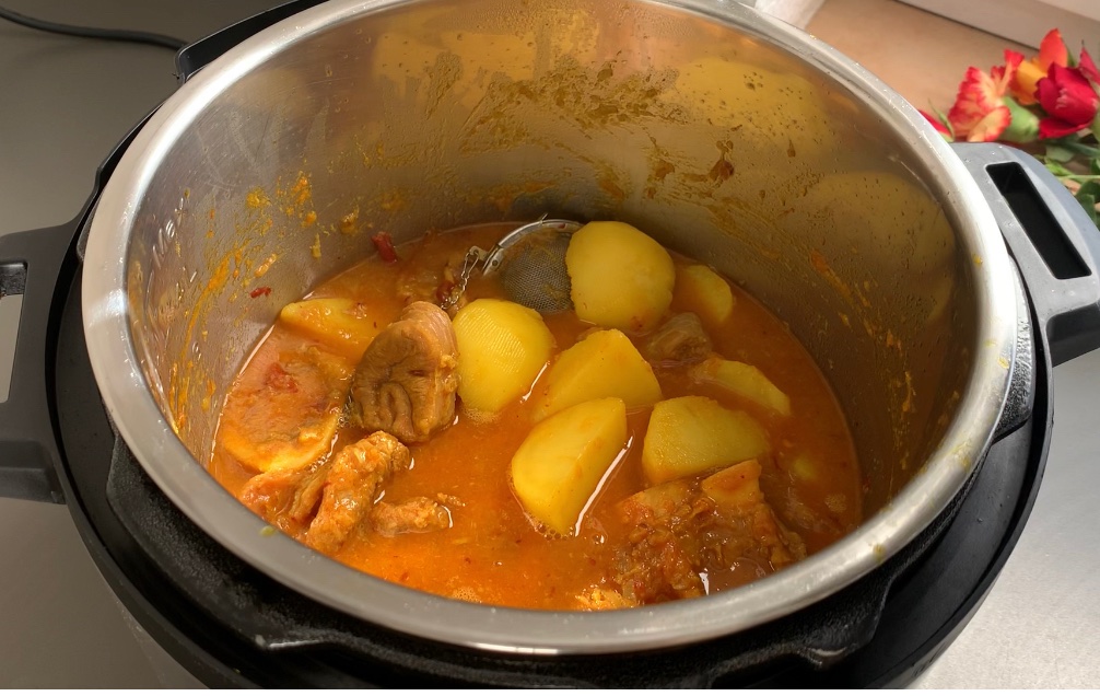 - Release the pressure after 30 minutes. Add the potatoes and cook with open lid on medium high heat for 10-15 minutes until all liquid has evaporated. Keep stirring to avoid burning.