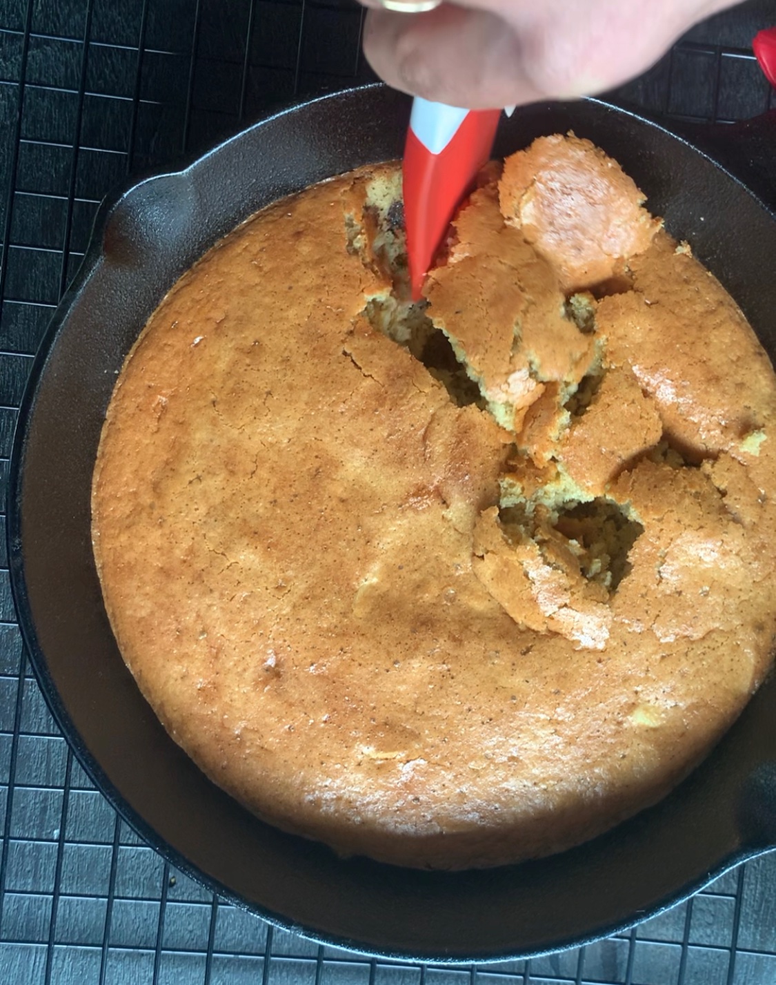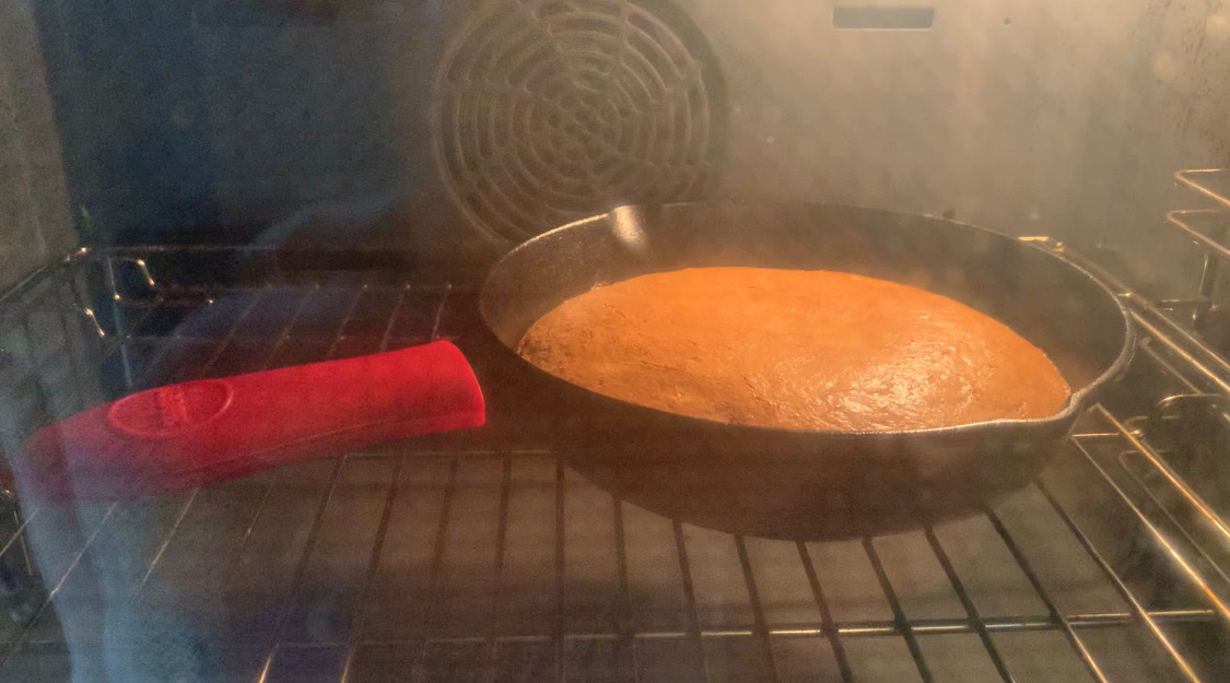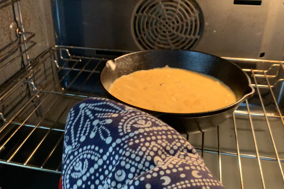 Transfer to an oven safe skillet and bake on the middle rack at 180° Celsius for 20-25 minutes.
