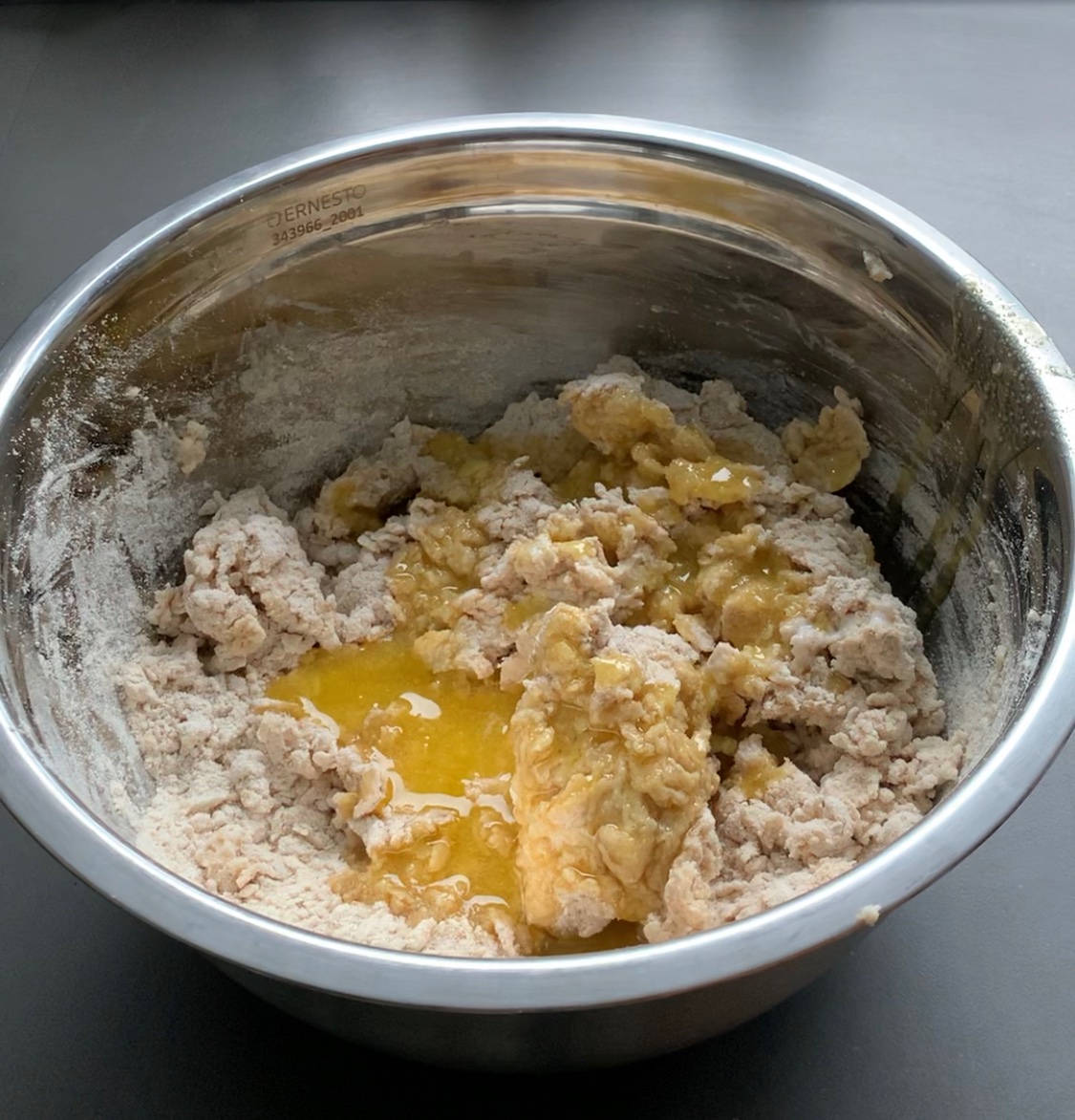 Add the ghee and start kneading the dough using your hands. Stretch the dough to form gluten and make it smoother.